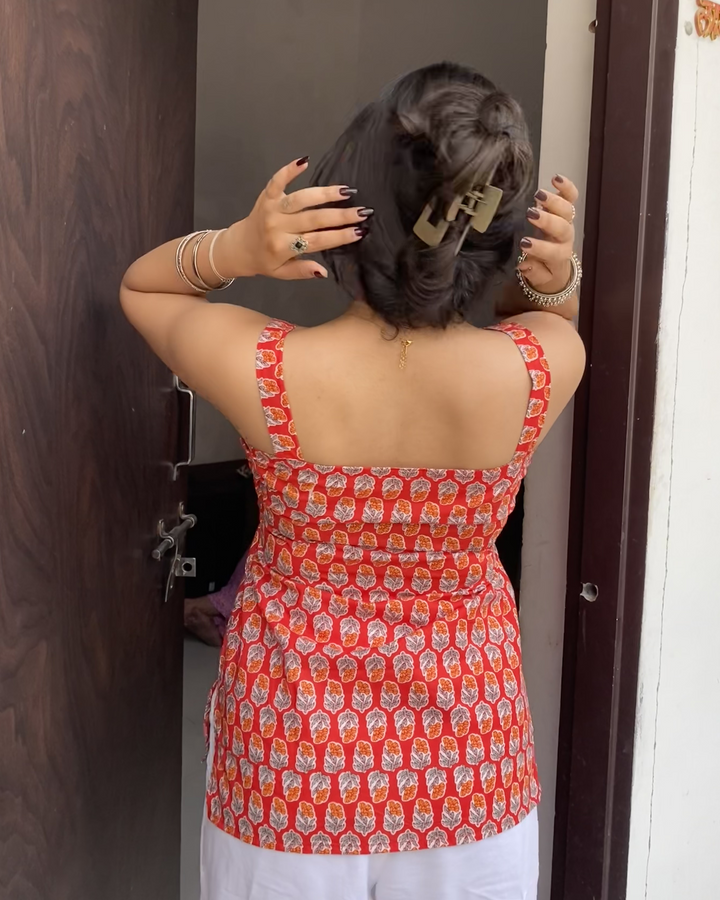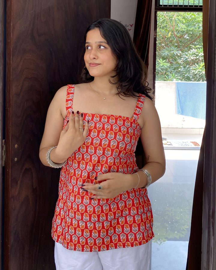 Experience comfort and style with the Trisha Blue Printed Cotton Crop Top. Made from breathable cotton, this top keeps you cool while showcasing a charming blue print that adds a fresh, vibrant touch to your wardrobe. Its cropped design offers a flattering fit that pairs effortlessly with your favorite bottoms. Perfect for casual outings or relaxed days, it combines ease and elegance in one must-have piece.