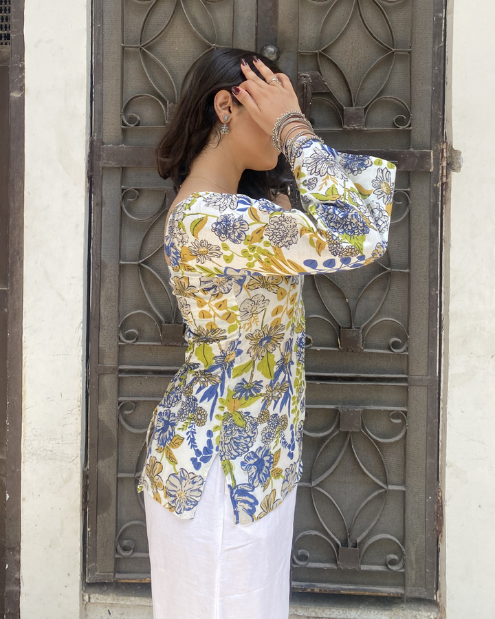 Discover elegance and comfort with the Noorina White Printed Bell Sleeves Kurti, featuring a stylish corset back for a flattering fit. The delicate bell sleeves add a graceful touch, while the airy fabric keeps you comfortable throughout the day. Perfect for casual outings or festive occasions, this kurti combines traditional charm with modern design to enhance your wardrobe effortlessly.